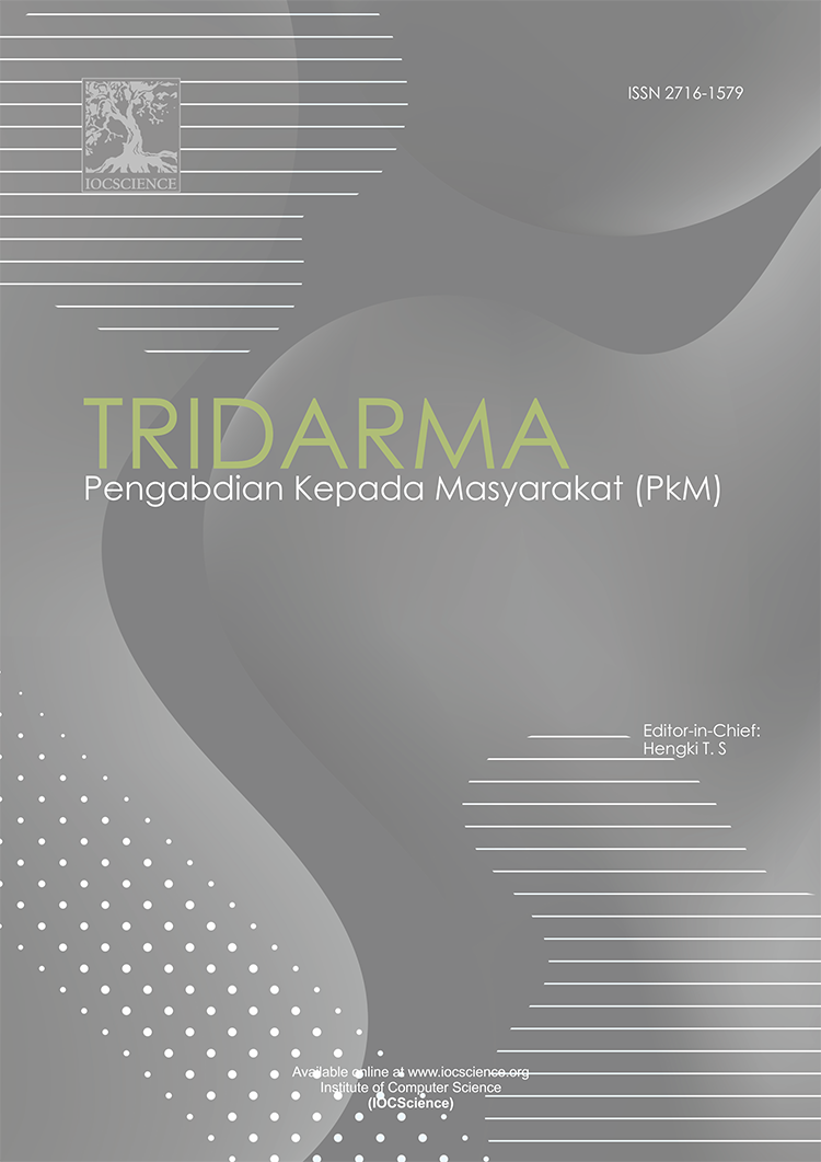 TRIDARMA: Pengabdian Kepada Masyarakat (PkM) adalah jurnal ilmiah multidisiplin terbitan Institute of Computer Science (IOCS). Di tingkat nasional lah yang mencakup banyak masalah atau isu umum yang berkaitan dengan layanan masyarakat. Publikasi jurnal ini bertujuan untuk menyebarluaskan pemikiran atau gagasan konseptual dan hasil penelitian yang telah dicapai di bidang pengabdian kepada masyarakat.